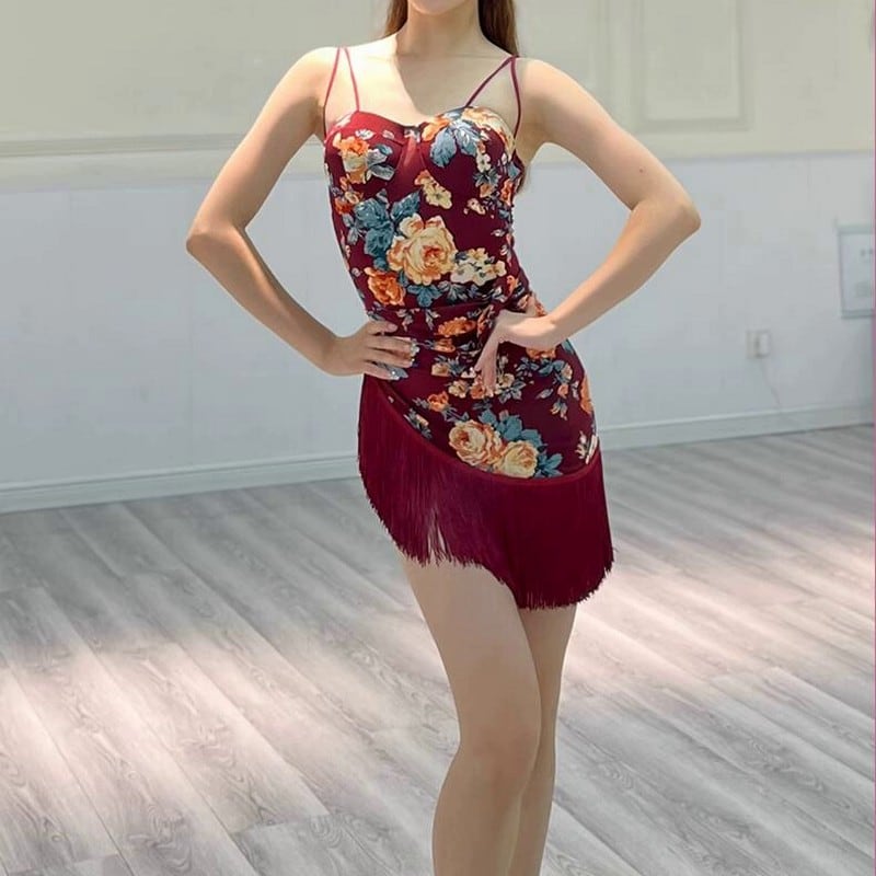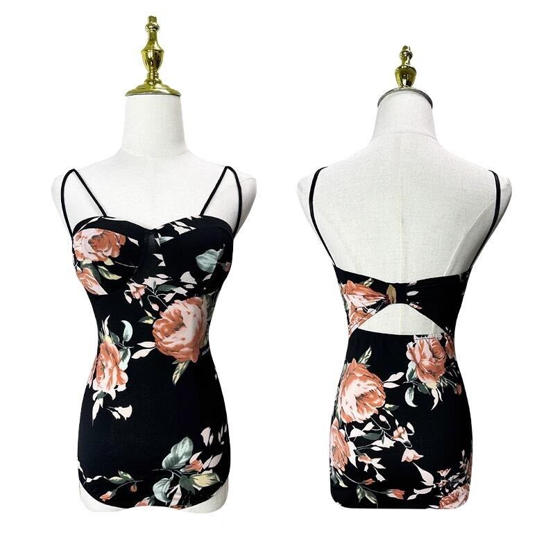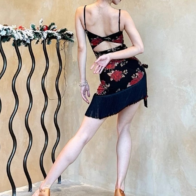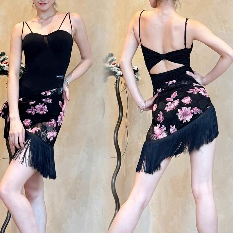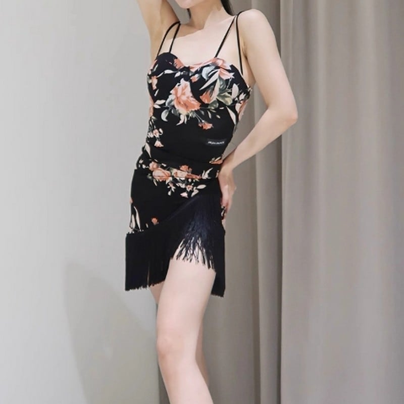 繊細な花柄と立体的なカップデザインが女性らしさを引き立てるダンス用キャミソールトップ。