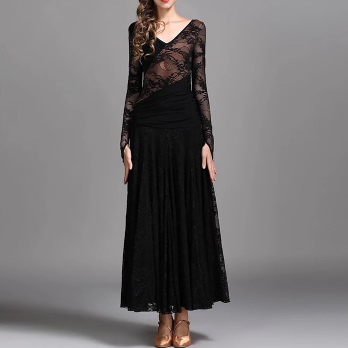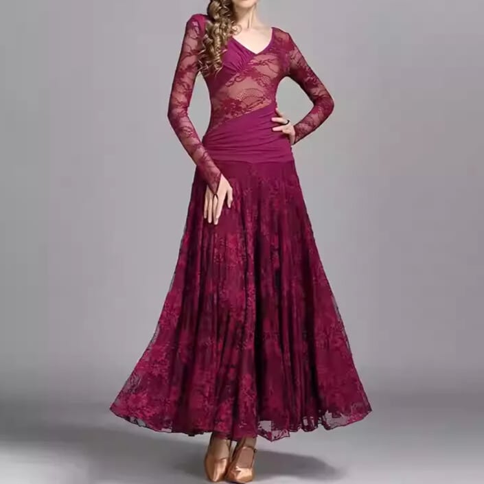 エレガントで優雅なシルエットは、社交ダンスの衣装におすすめです。