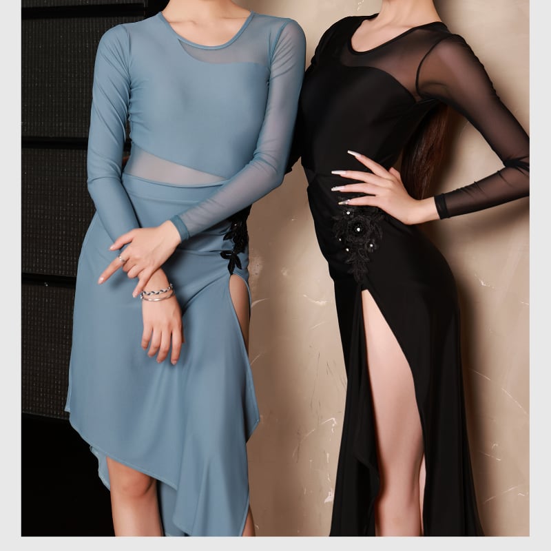 肩・胸元・ウエストに施されたシアー切り替えが、