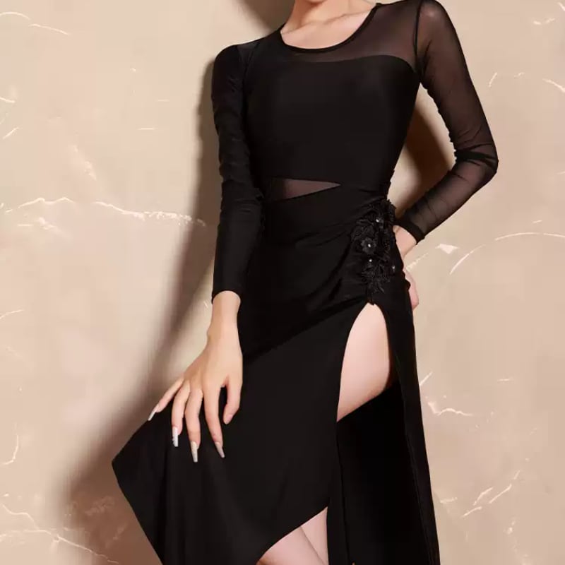 さらに、ウエストには立体的なブラックフラワー装飾を配置し、