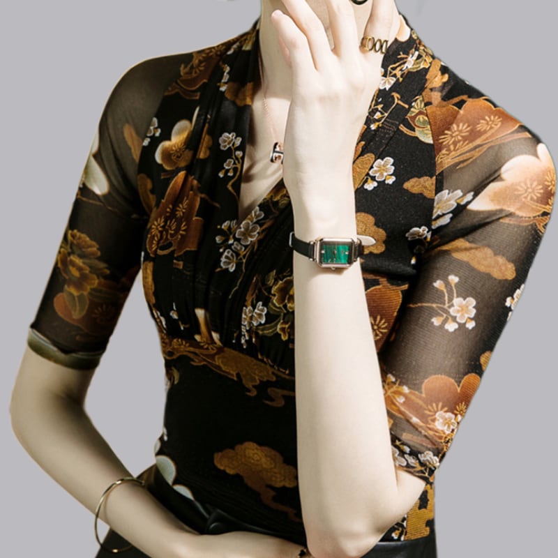 ヴィンテージフラワー×シアースリーブのコントラストが魅力の