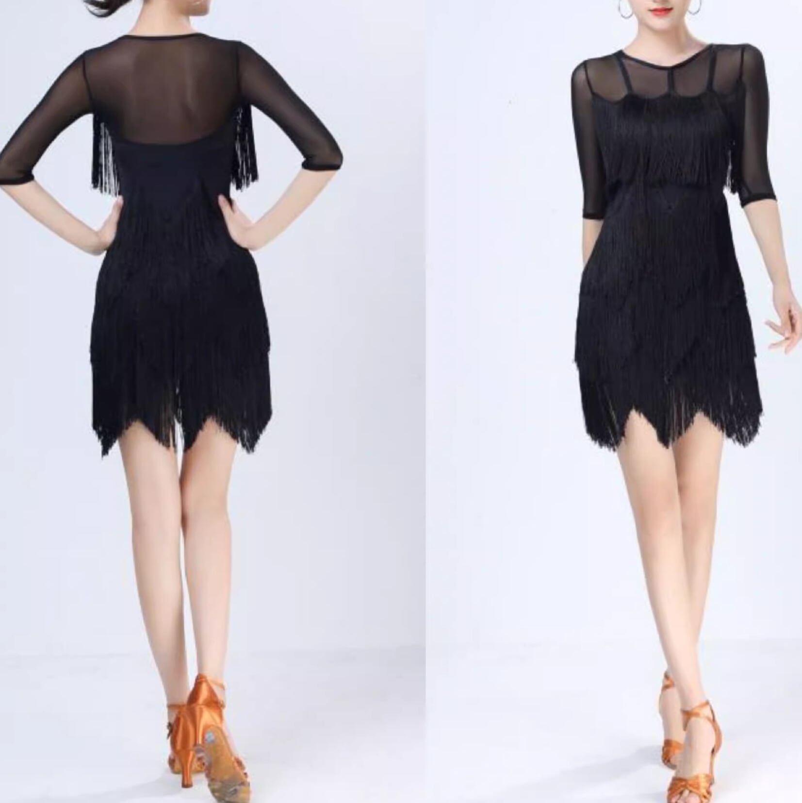 踊るたびに揺れるフリンジが、視線を釘付けにするミニダンスドレス。