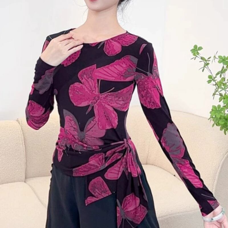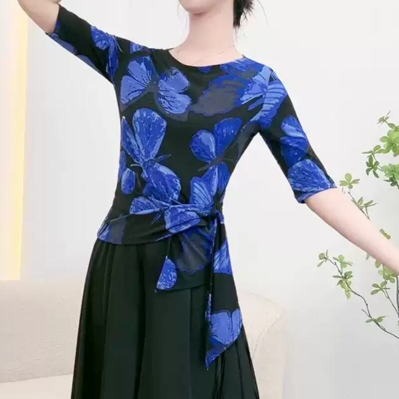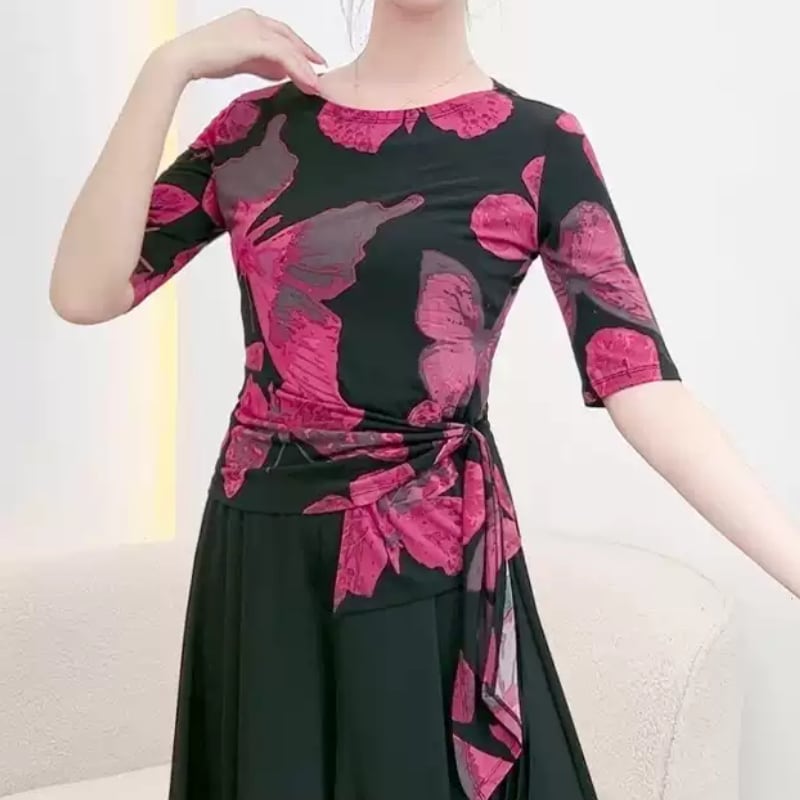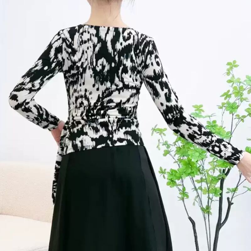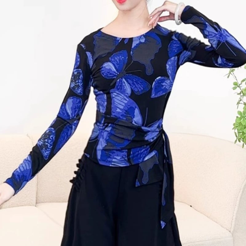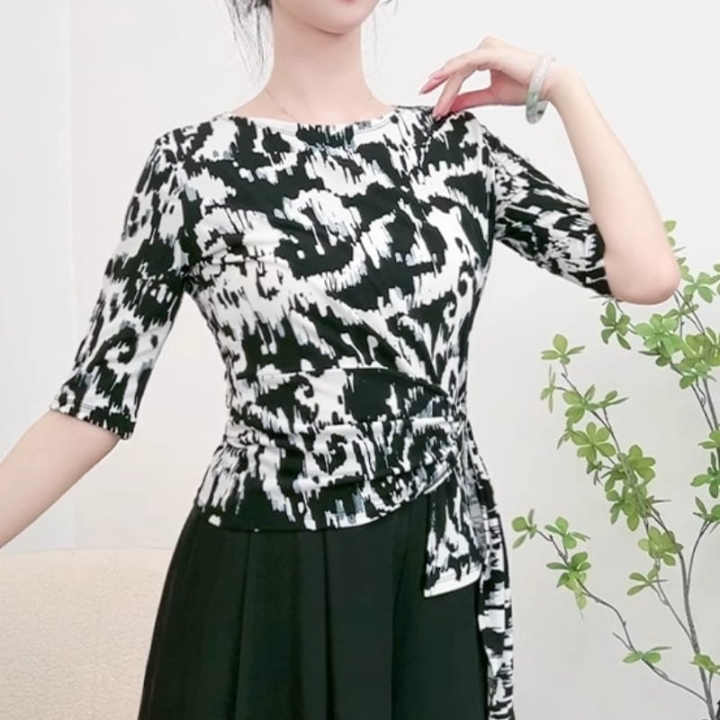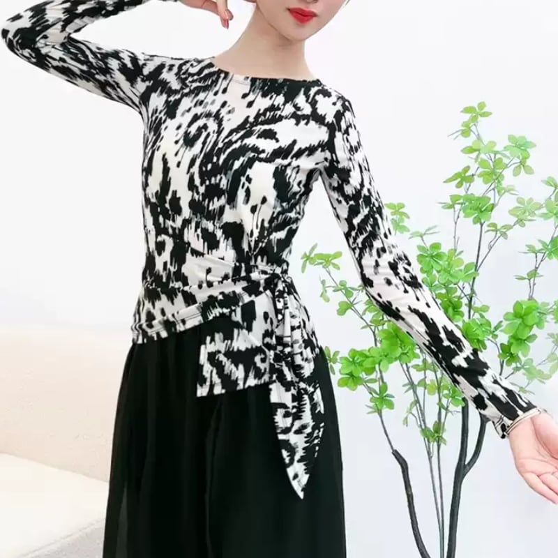 動きに合わせて美しく映える、アート柄デザインのダンストップス。