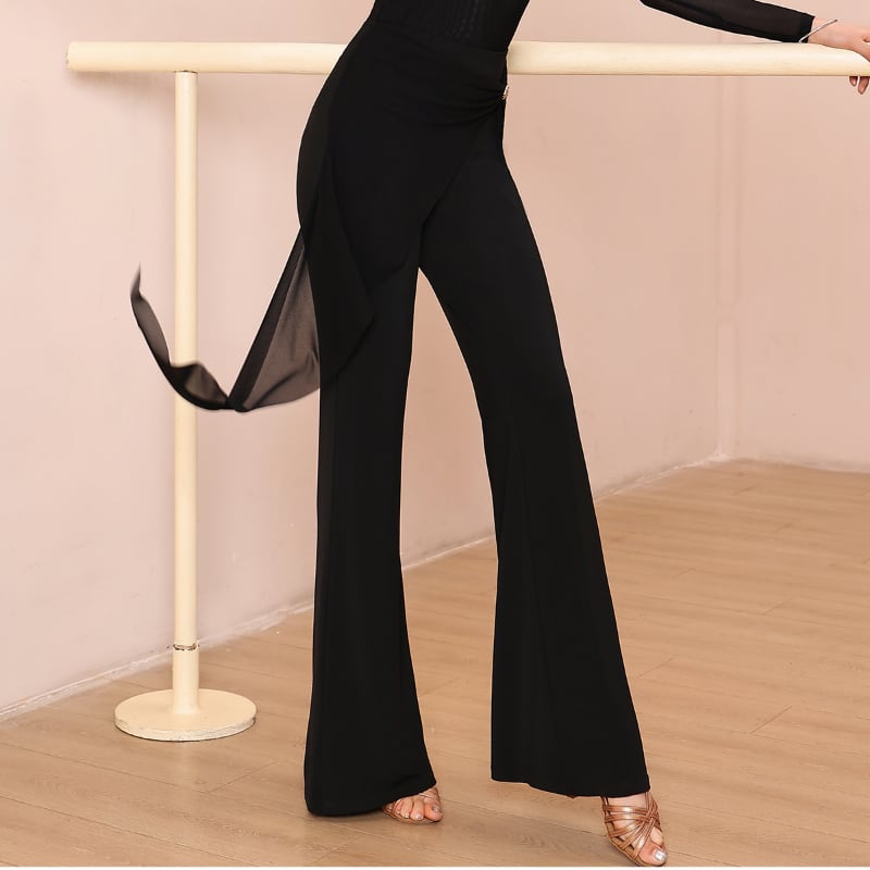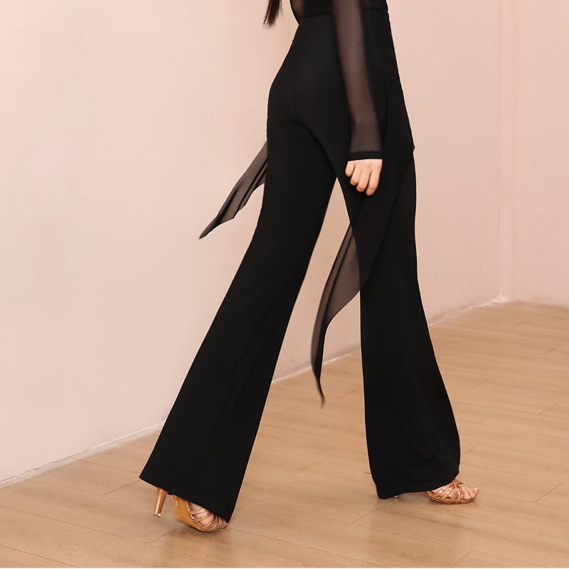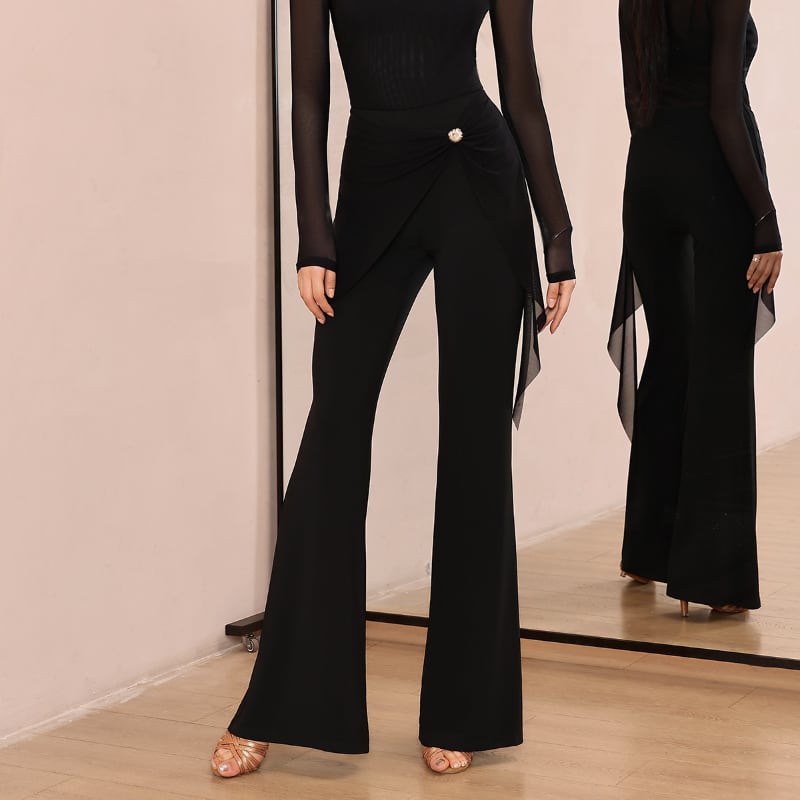 動くたびに美しく揺れる、洗練されたフレアシルエットの社交ダンスパンツ。