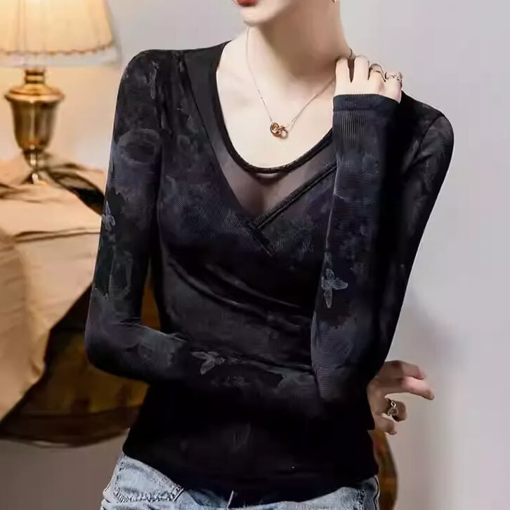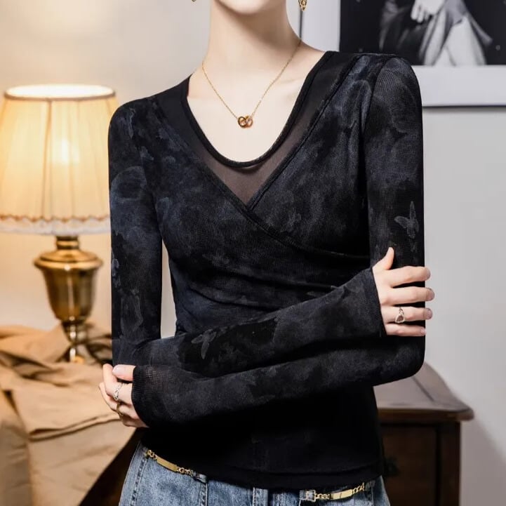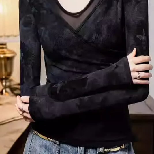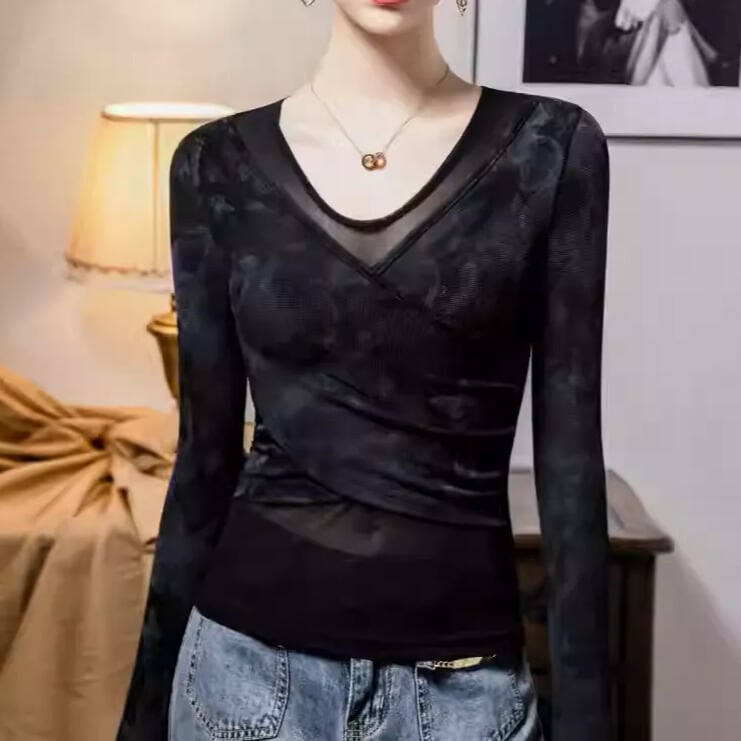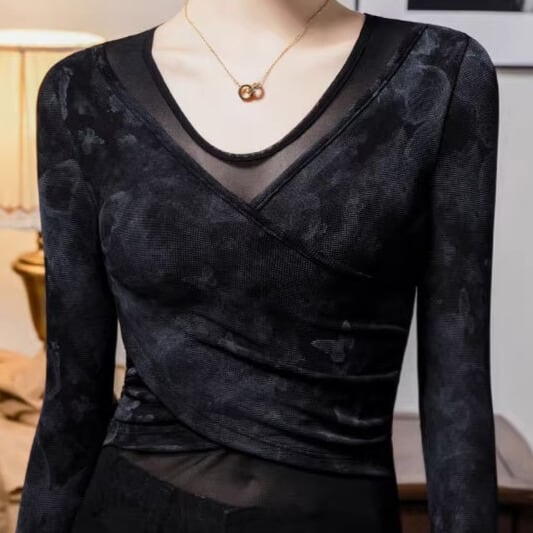 カシュクール Vネック ロングスリーブ スリム ダンスカットソー ds1425