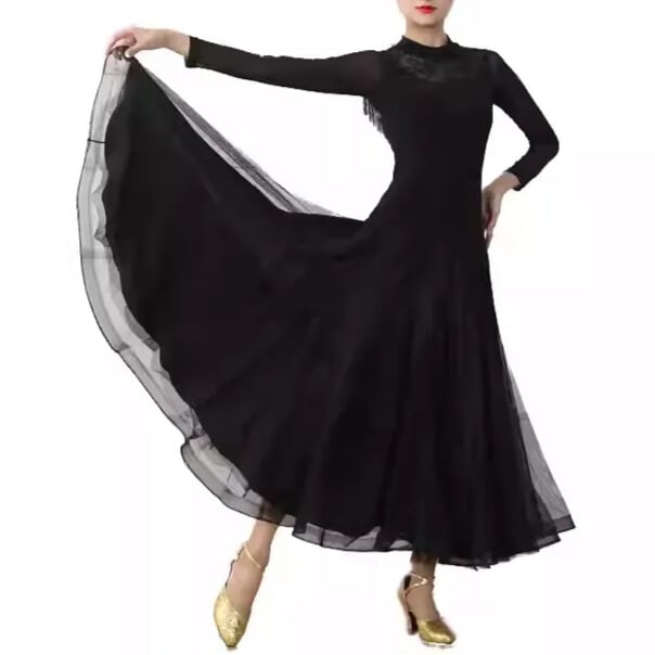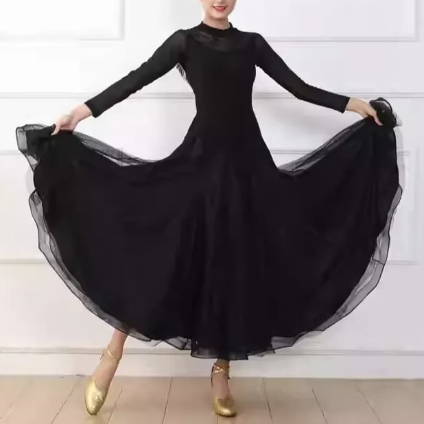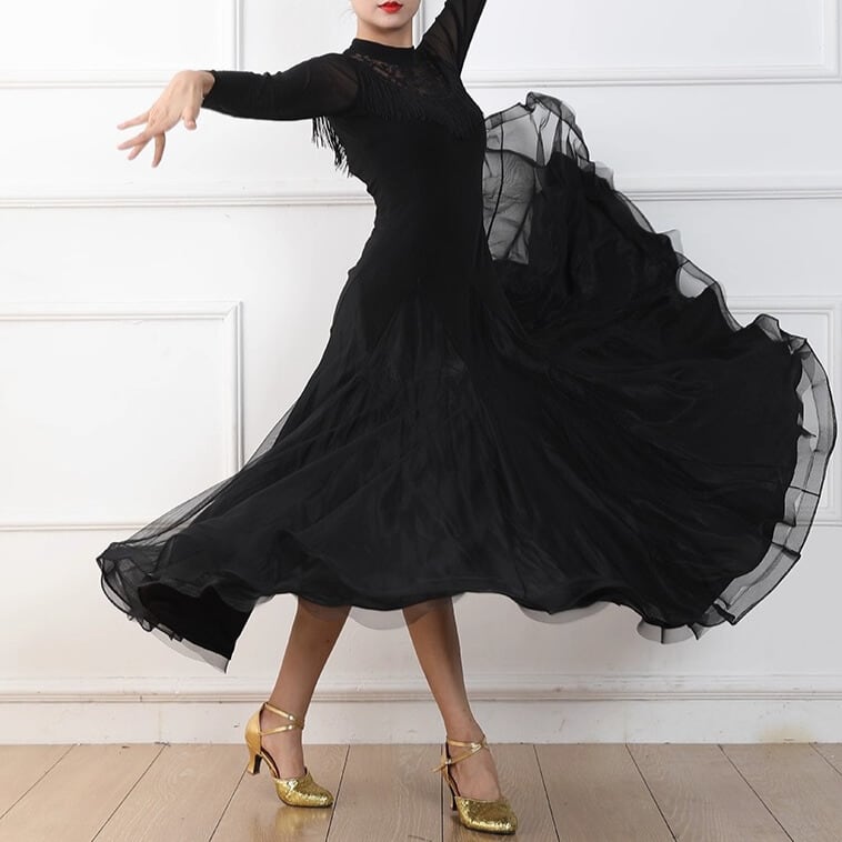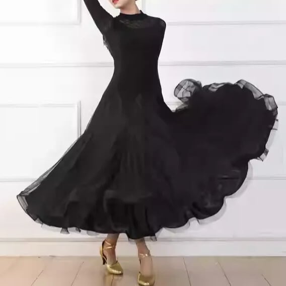 フレアスカートが優雅に広がり、ダンスの動きをより美しく見せてくれます。