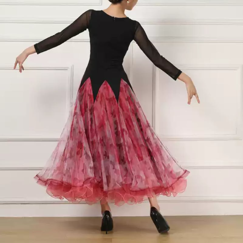 スカート部分は、動きに合わせて優雅に揺れるフレアデザインで、より一層華やかな雰囲気を演出します。