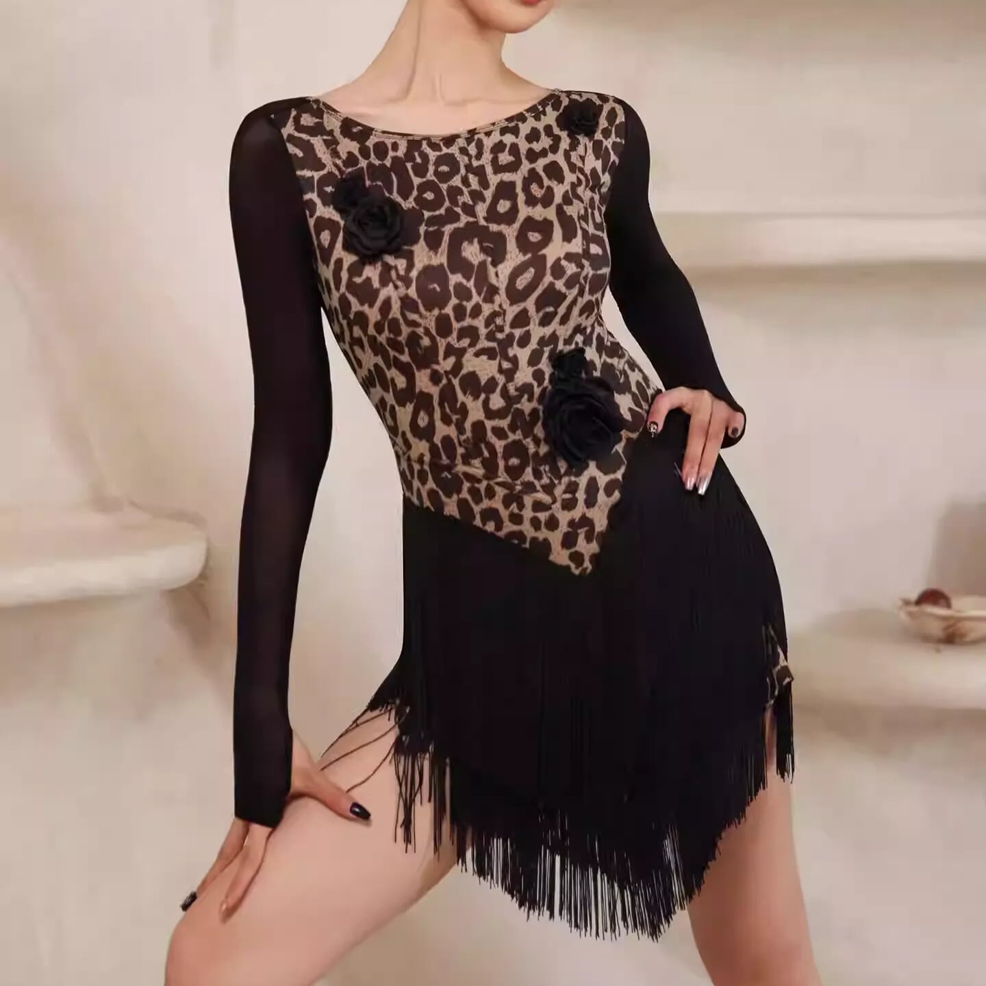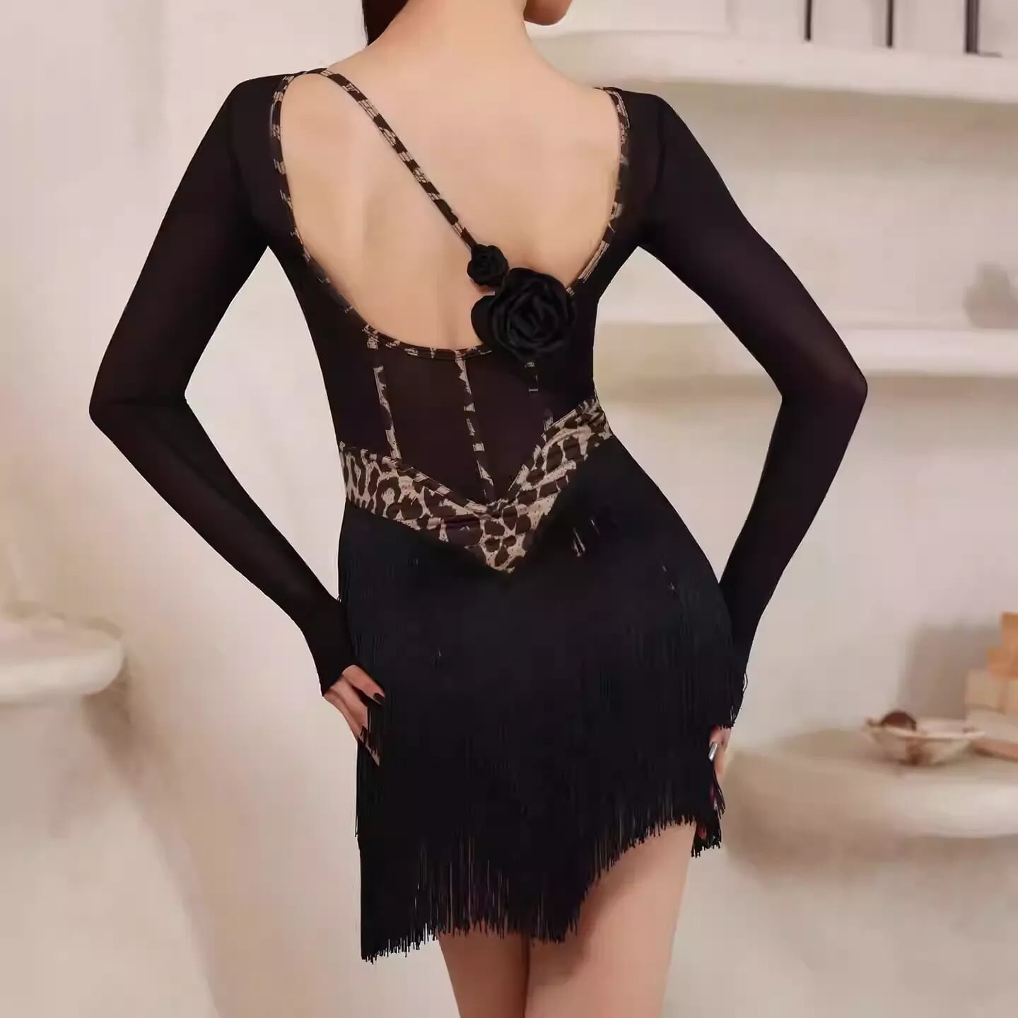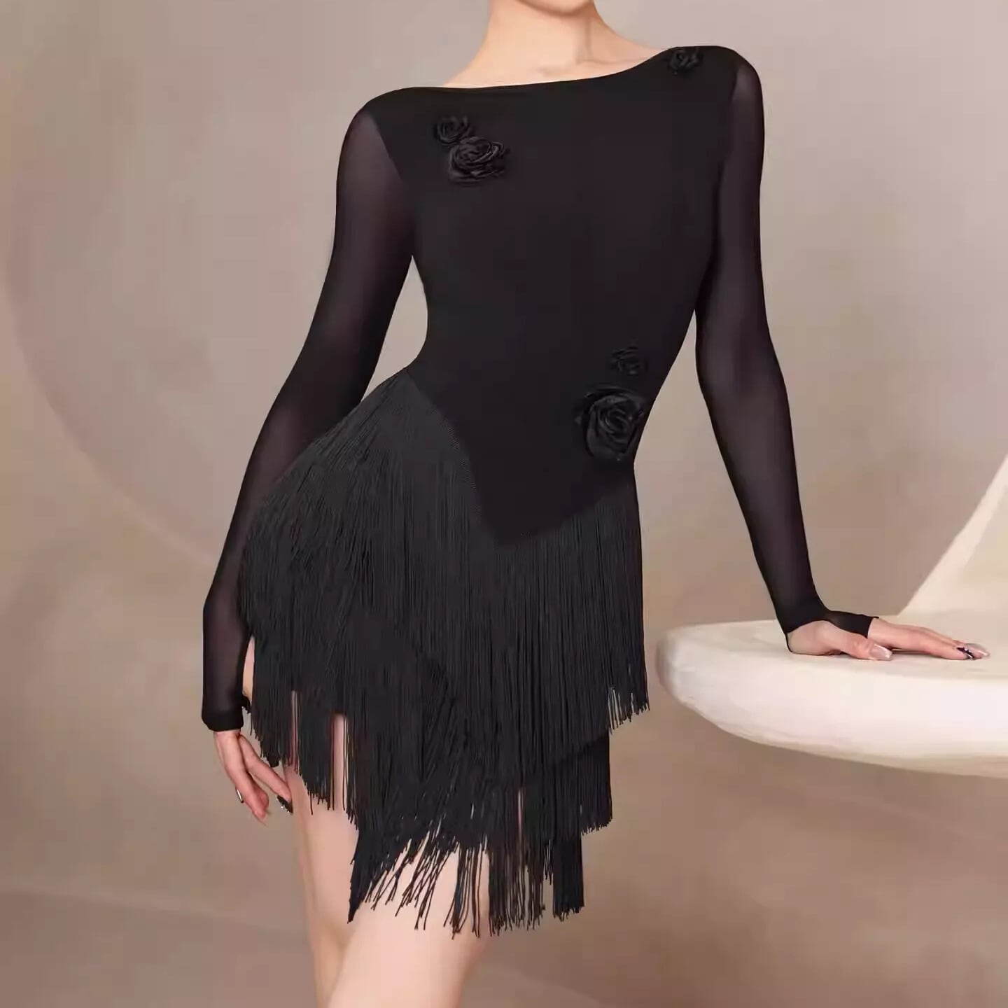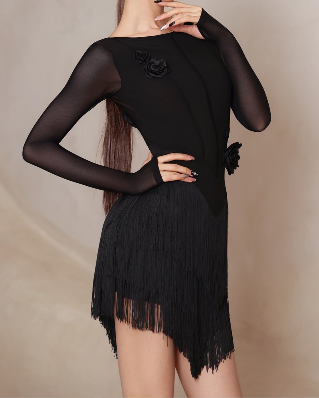 フリンジ ロングスリーブ ミニアシンメトリー ラテンドレス ds1440