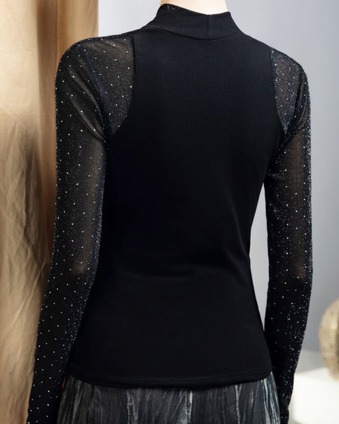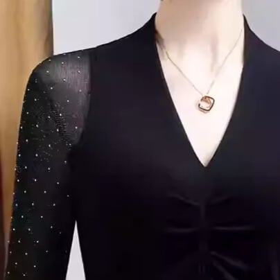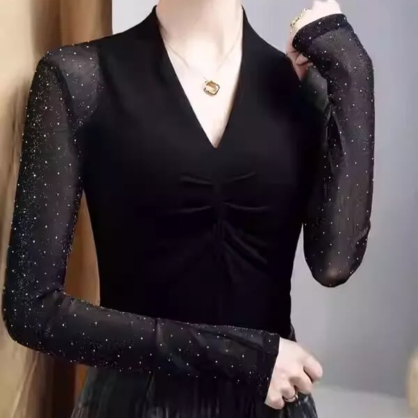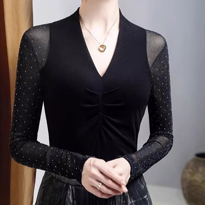 Vネック ロングスリーブ ドット シースルースリーブ トップス ds1447