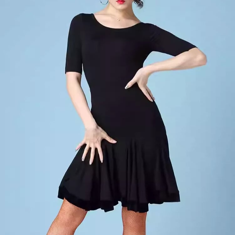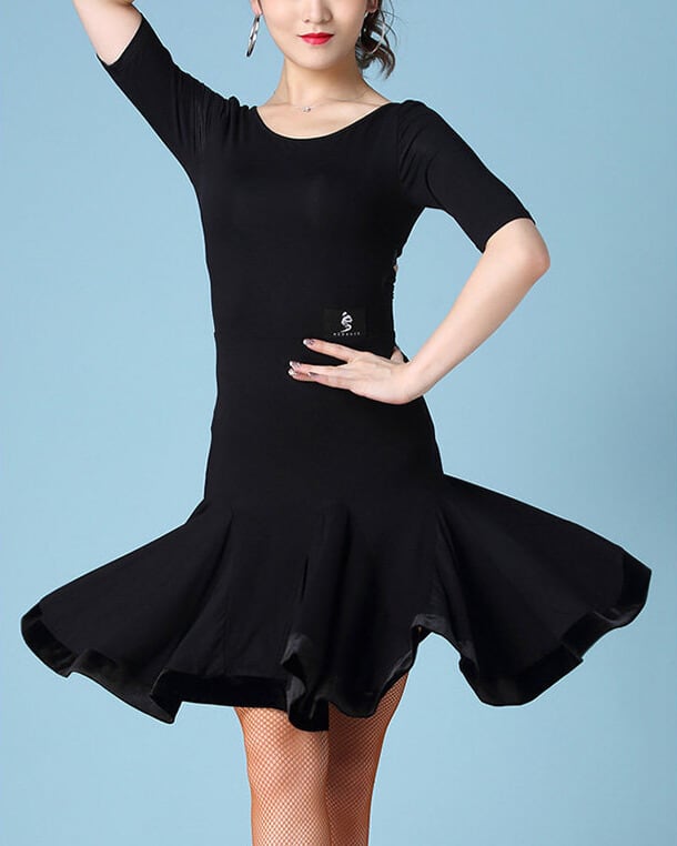 半袖が上品さを添える、ミニ丈ダンスドレス。