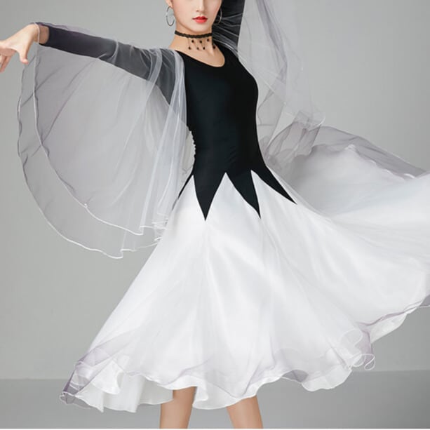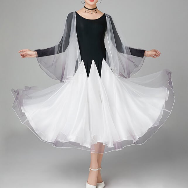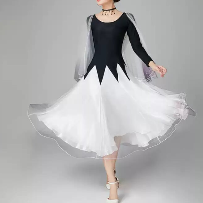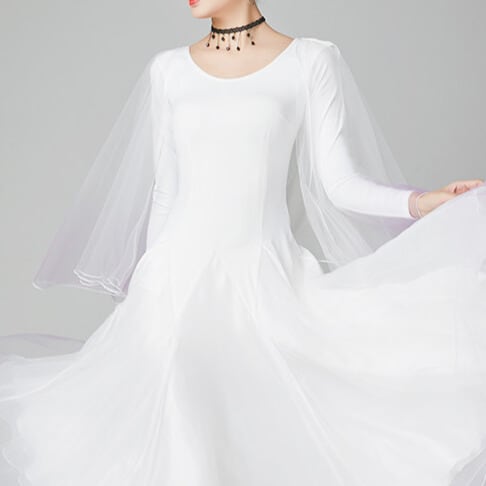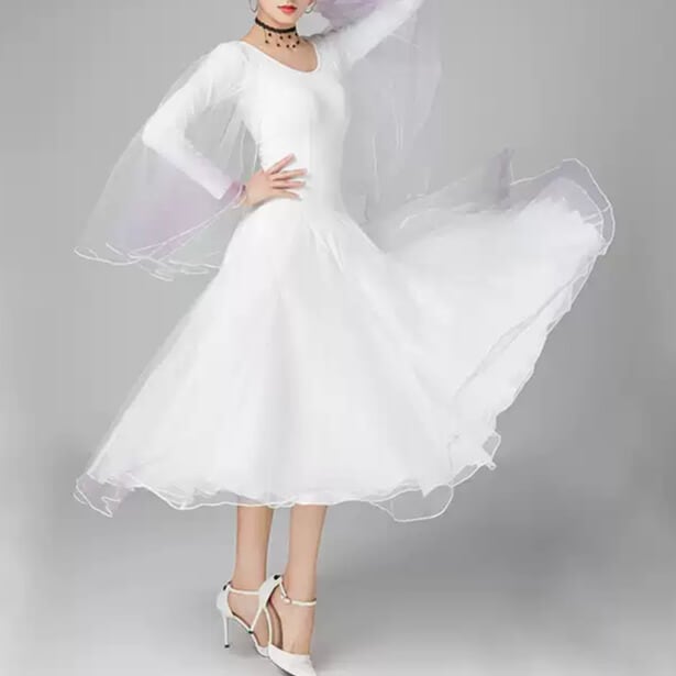 流れるようなAラインシルエットが美しい長袖ダンスドレス。