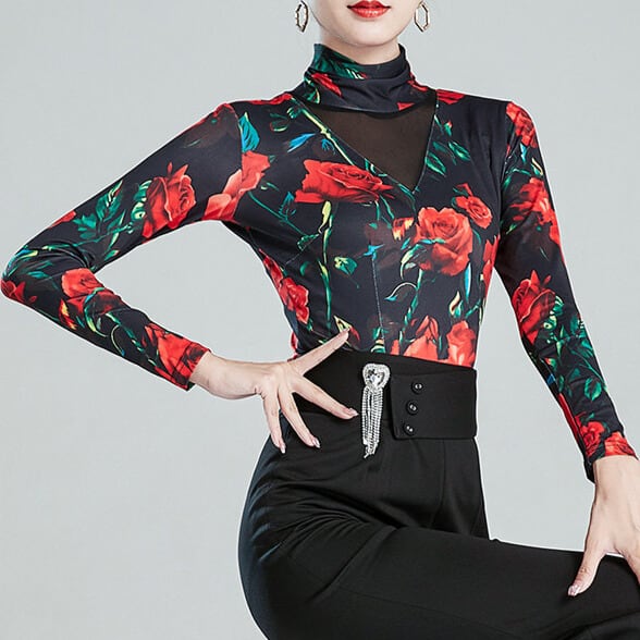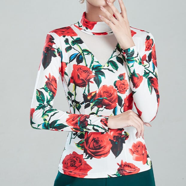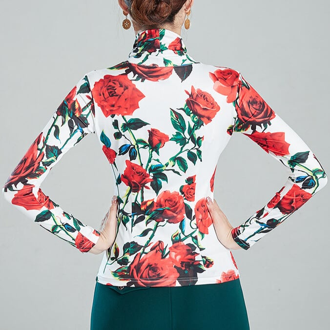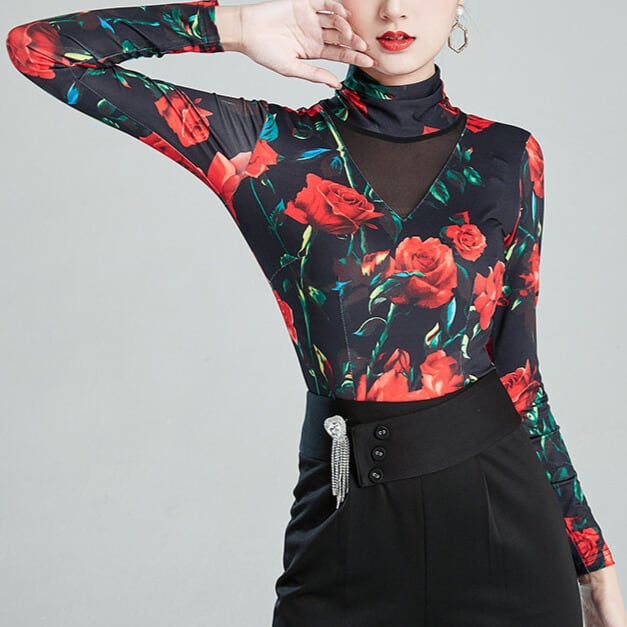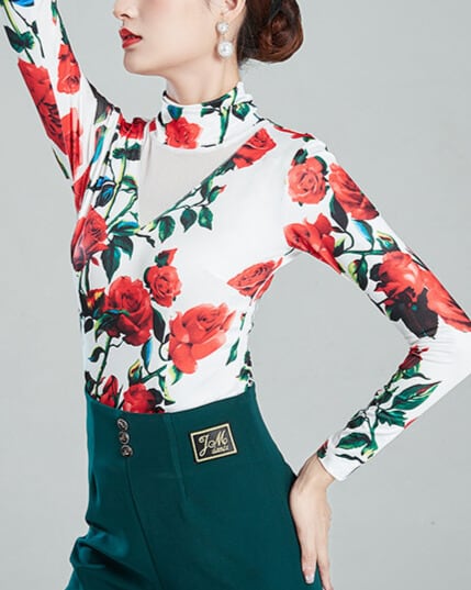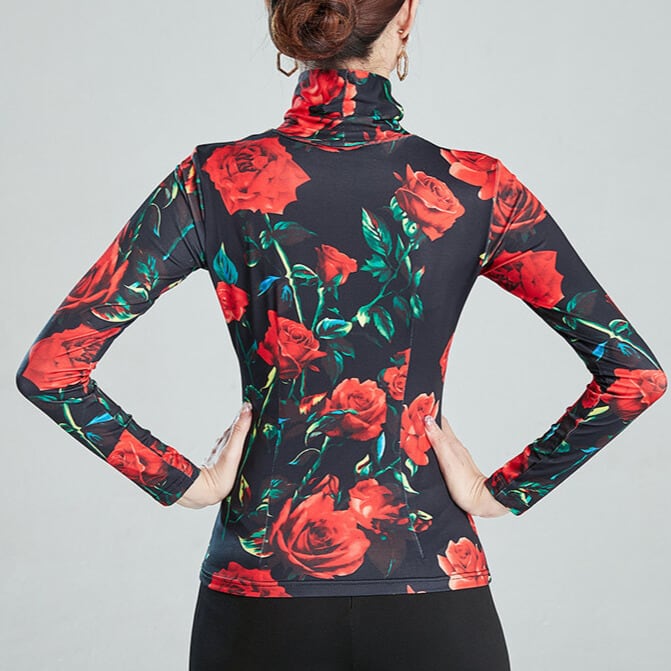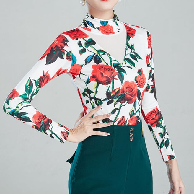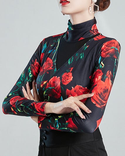 ハイネック ロングスリーブ フラワープリント ダンストップス ds1479