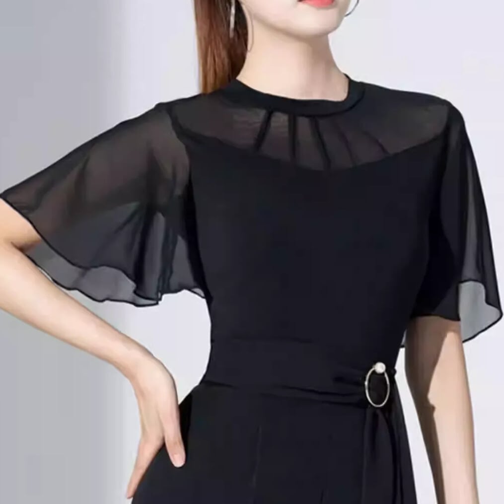ベルト シアーネック フレアスリーブ ダンストップス ds1491