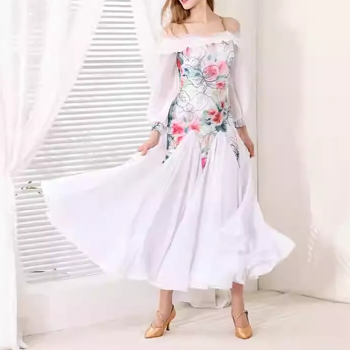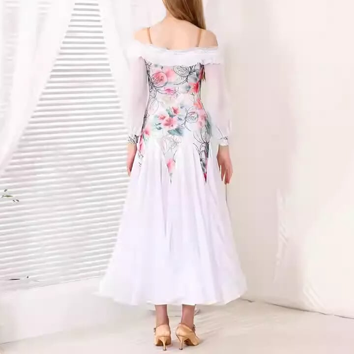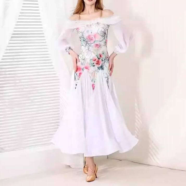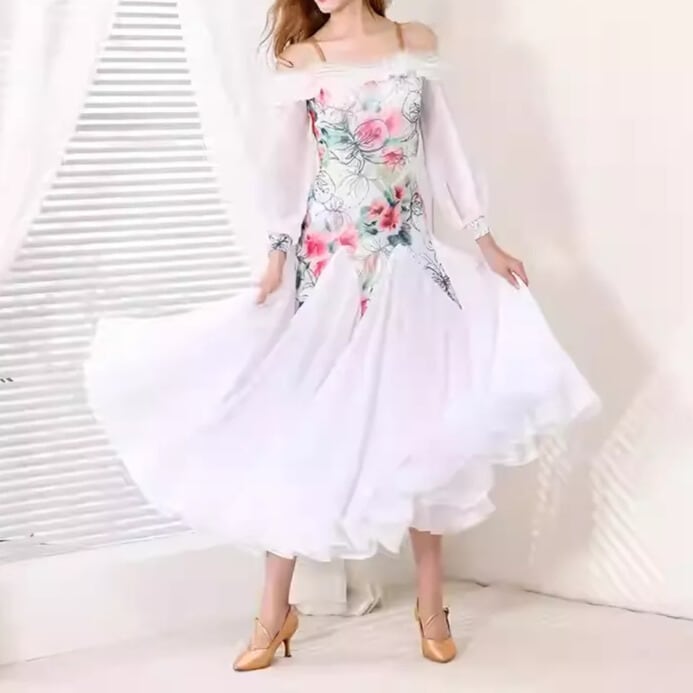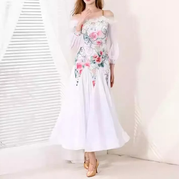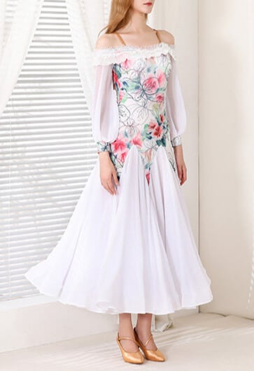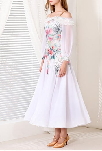 優雅な花柄デザインが目を惹く、エレガントなスタンダードドレス。