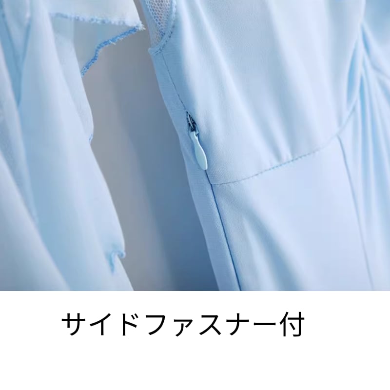 チュールスリーブ シースルー ミモレ フレアワンピース ds1498