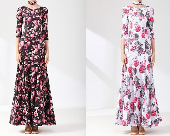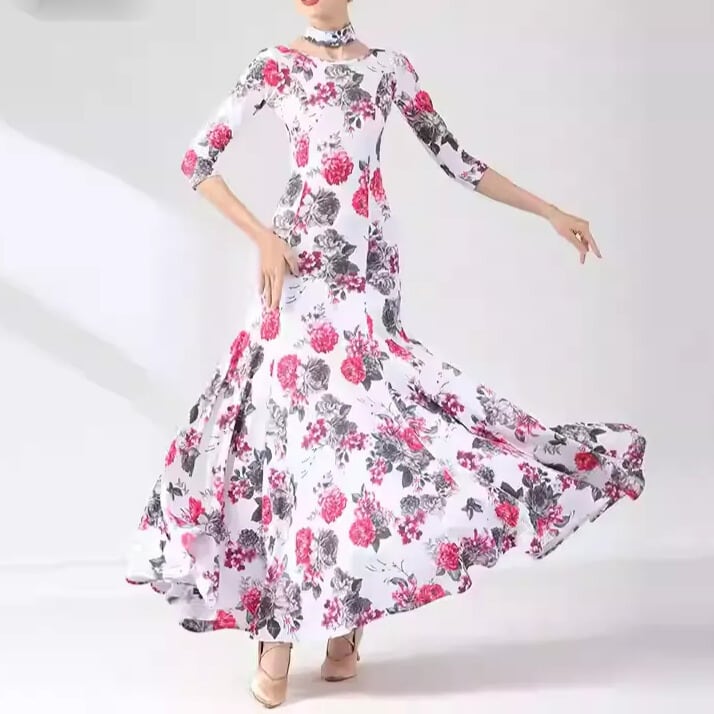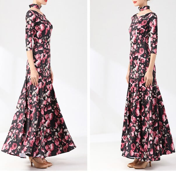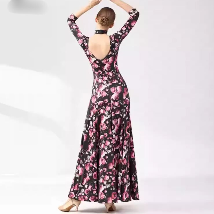 チョーカーネック マキシ フラワープリント ダンスドレス ds1500