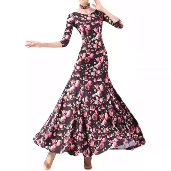七分袖が上品さを演出し、ダンスの際の腕の動きを邪魔しません。