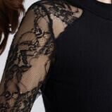 ボディ部分はすっきりとしたシンプルデザイン、袖には透け感のあるレースをあしらい、程よい抜け感と女性らしさを演出します。