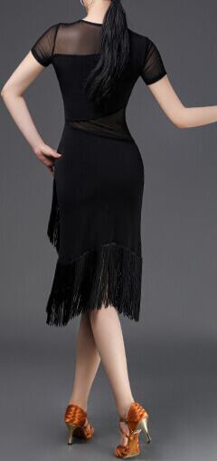 ブラック シアーメッシュデザイン フリンジ ラテンドレス ds1510