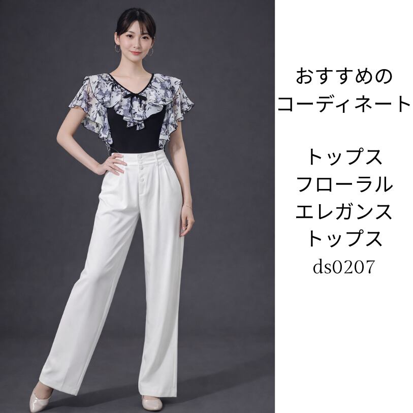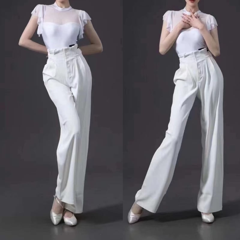 エレガントフローホワイト・ダンスワイドパンツ ds0204