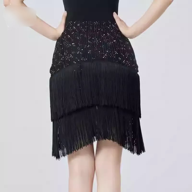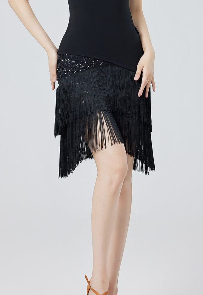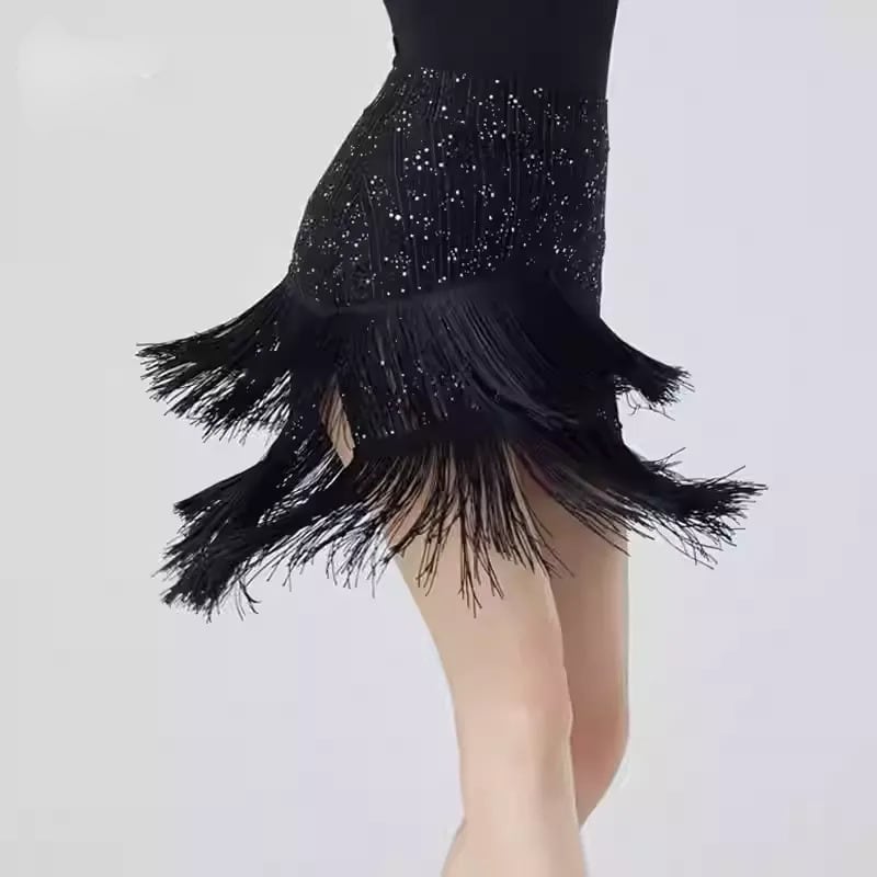動くたびに美しく揺れるフリンジと、繊細に輝くグリッターが印象的なラテンスカート。