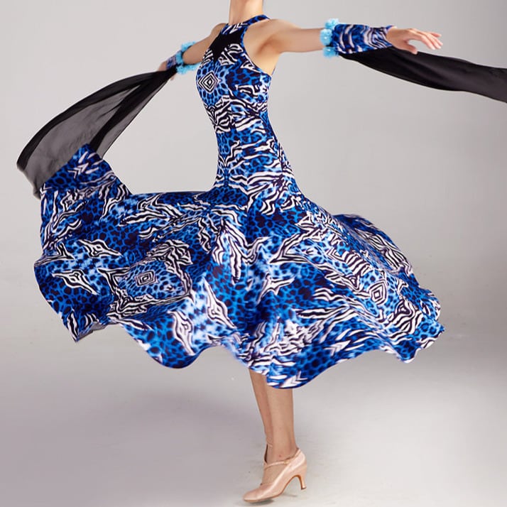 ミモレ丈のフレアスカートが優雅な印象を与え、軽やかな踊りをサポートします。