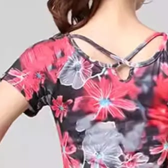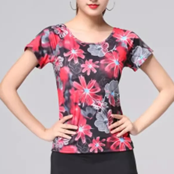 フラワープリント スリムフィット ラウンドネック ダンスカットソー ds1511