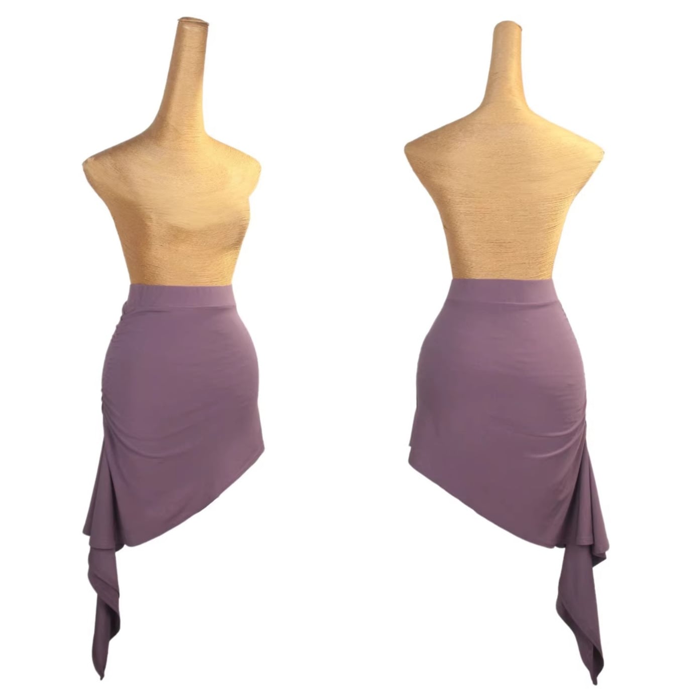 斜めにカットされた裾ラインが脚をすっきりと長く見せ、女性らしいラインを引き立てます。