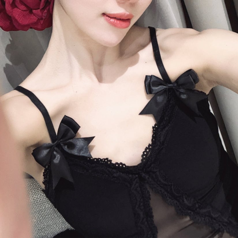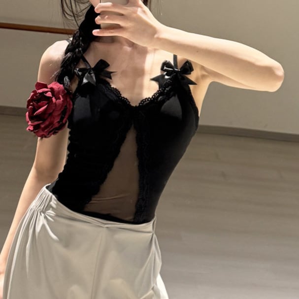 リボン レース シースルーカット キャミソール レオタード ds1533