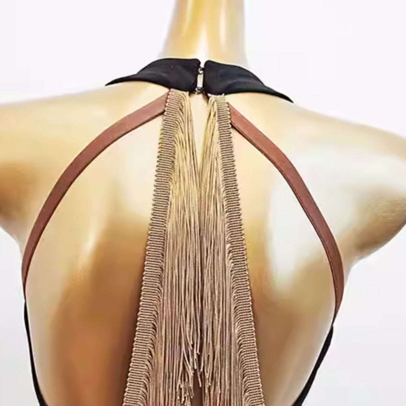 フリンジ ホルターネック ノースリーブ ダンスドレス ds1541