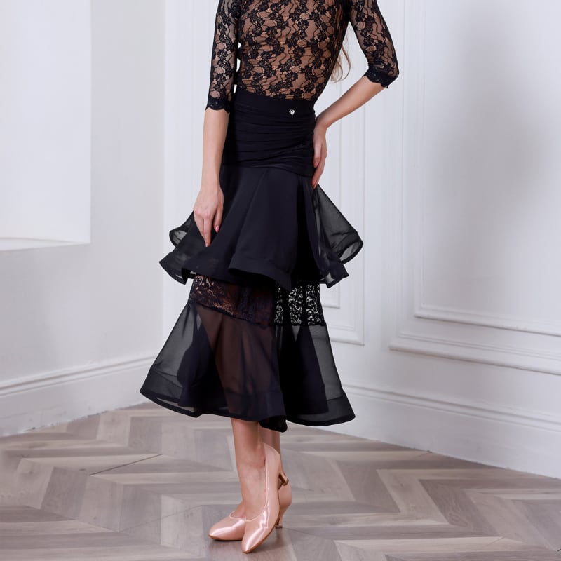 軽やかに揺れるレイヤードデザインが美しい、エレガントなダンススカート。