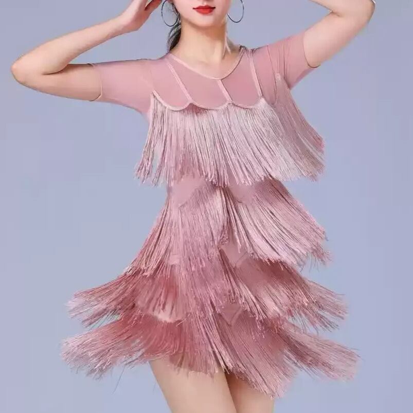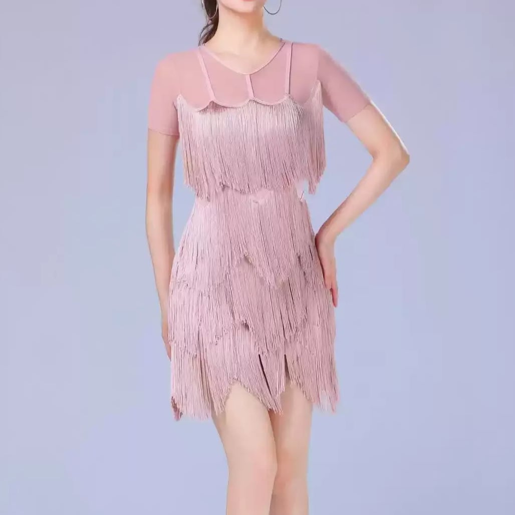 フリンジ ティアードデザイン ミニ ダンスドレス ds1539