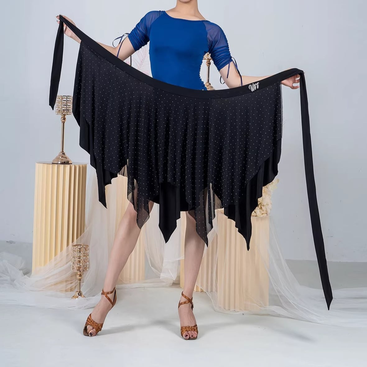 ビジュー ウエストリボン アシンメトリー ラップスカート ds1546