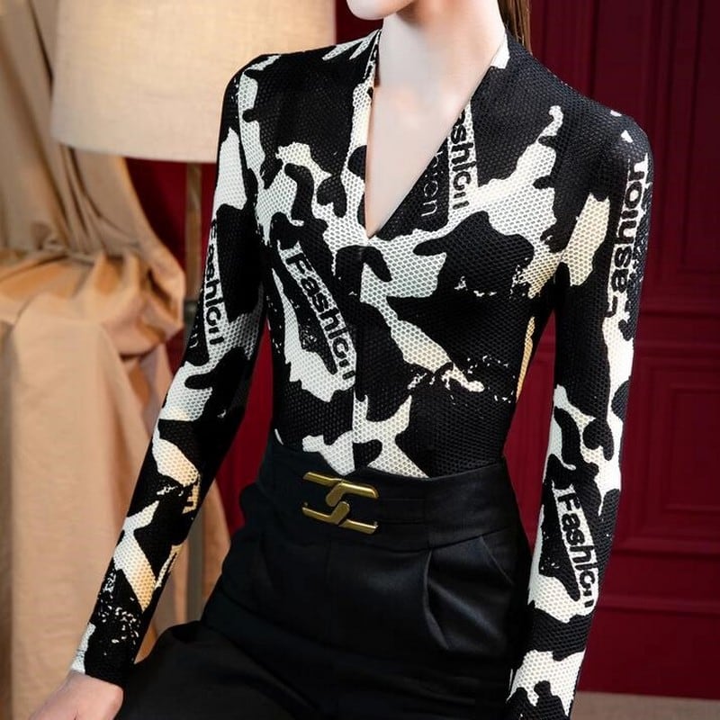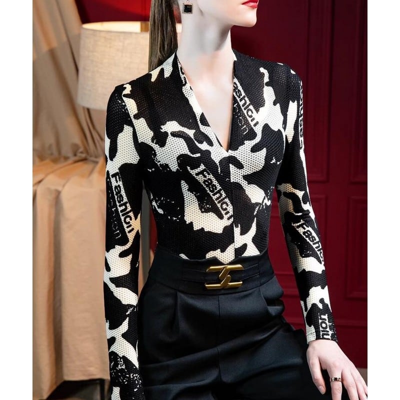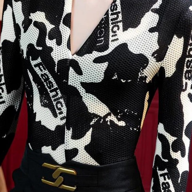 大胆なブラック&ホワイトのコントラストが映えるトップス。