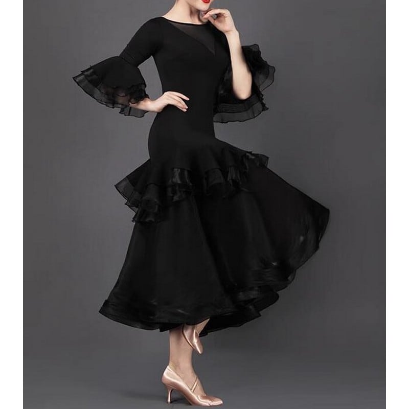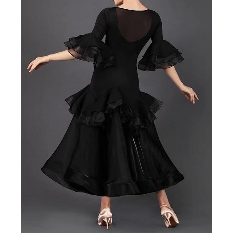 モノトーンカラーの エレガントなティアードスカート デザインドレス。